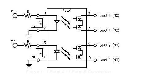 Vin有电压输入,有电流从1管脚流到2管脚,管脚8和管脚7不导通(原来是常闭合导通的)。同样,Vin有电压输入,有电流从3管脚流到4管脚,管脚6和管脚5导通(原来是常开截止的)。