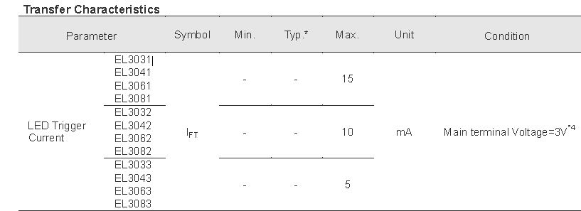 带过零检测光耦:EL3031/EL3032/EL3033,EL3041/EL3042/EL3043,EL3061/EL3062/EL3063,EL3081/EL3082/EL3083;